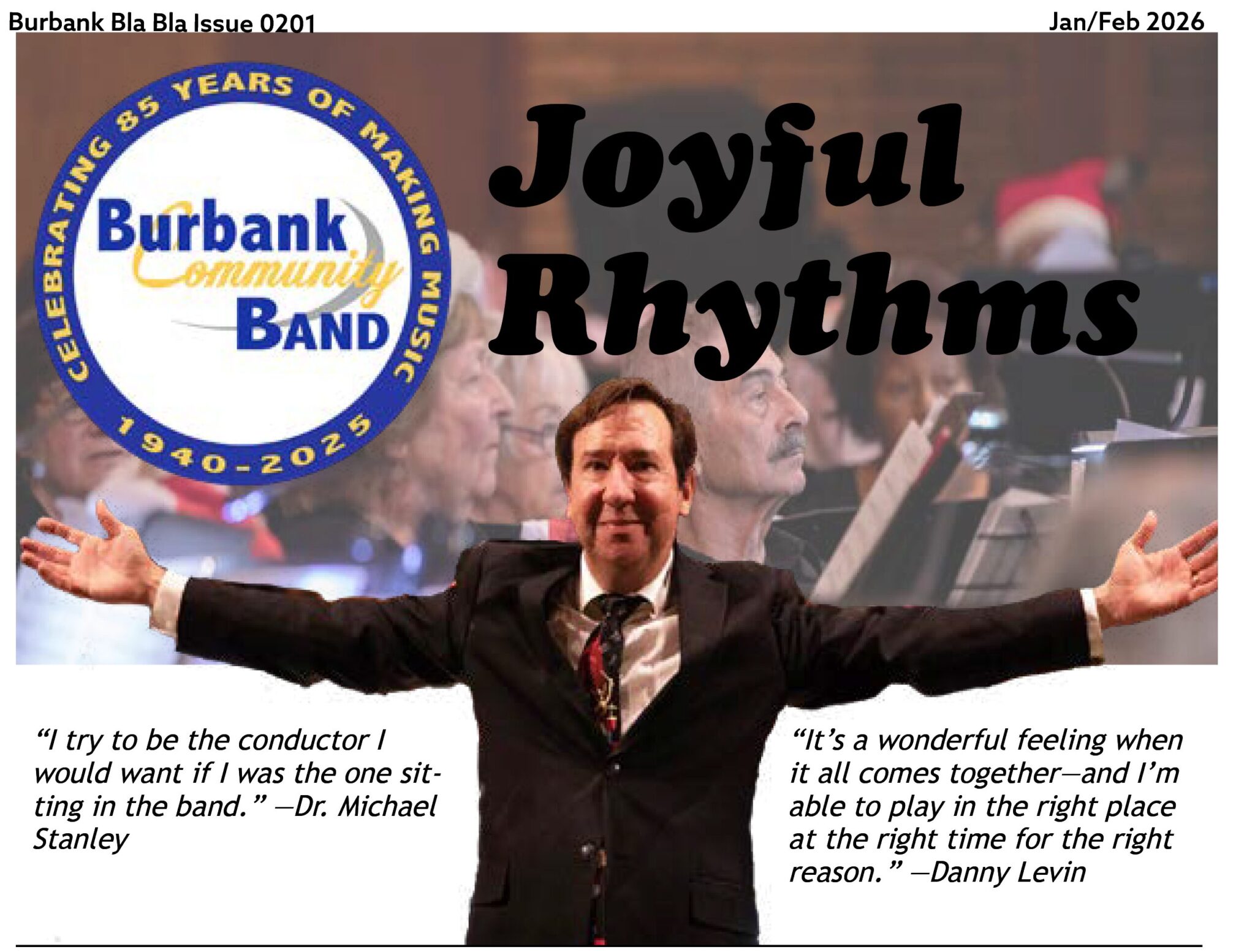 We’re honored to be featured in a recent four-page article in Burbank Bla Bla Living Arts Magazine (Jan/Feb 2026) celebrating the Burbank Community Band. The piece explores our history, volunteer musicians, and the joy of making music together — from rehearsal rooms to performances that bring people into the same rhythm.